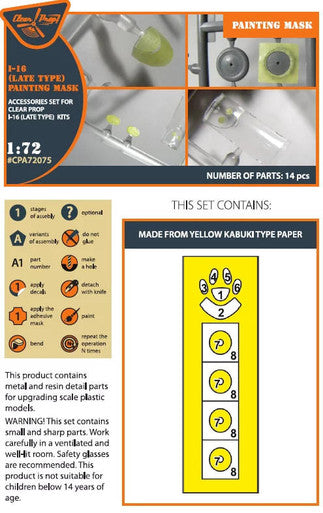 1/72 Clear Prop I-16 (late version) painting mask on yellow kabuki paper for CP kit