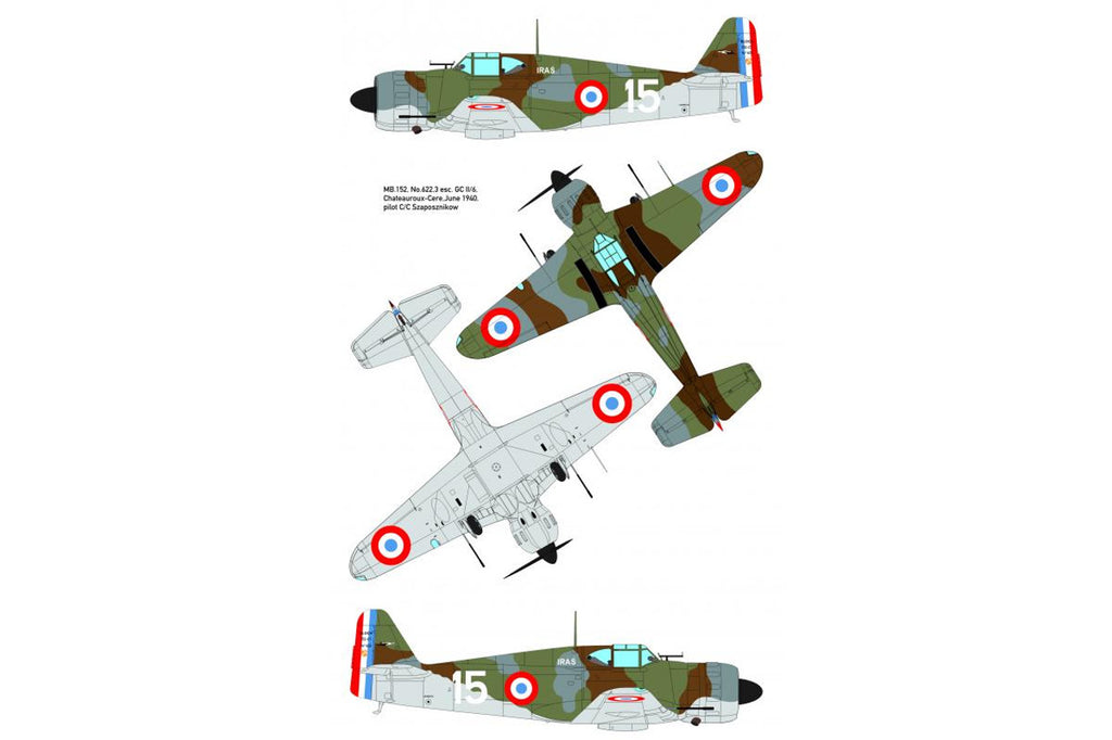 The MB. 152 was "the first true aircraft" of the series (MB.150-157).This model was equipped wtth a more powerful 1,030 hp Gnome-Rhdne 14N-21 engine, capable of a speed of 520 km/h and equipped with a revised armament arrangement On 15 December 1938, the MB.152.01 prototype performed its maiden flight. During January 1939, it was refitted with a more production-representative 1,000 hp Gnome-Rhone 14N-25 engine; various alternative engine cowlings and propellers were also tested to address engine overheating. To prevent further delays to the production aircraft, a large cowling was adopted, which Increased drag and reduced the MB. 152's flight performance. 482 units built.