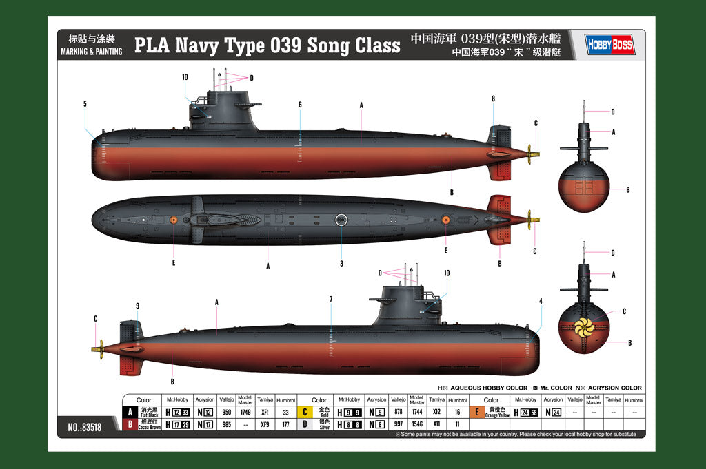The Type 039 (NATO reporting name: Song class) is the diesel-electric submarine designed by Wuhan Ship Development and Design Institute (701 Institute) for the PLA Navy (PLAN). Construction of the submarine was carried out by Wuhan Shipbuilding Industry Company (also known as Wuchang Shipyard or 438 Factory) in Wuhan, Hubei Province and Jiangnan Shipyard Group Corporation in Shanghai. At least 16 hulls have been delivered to the PLA Navy since 1994.