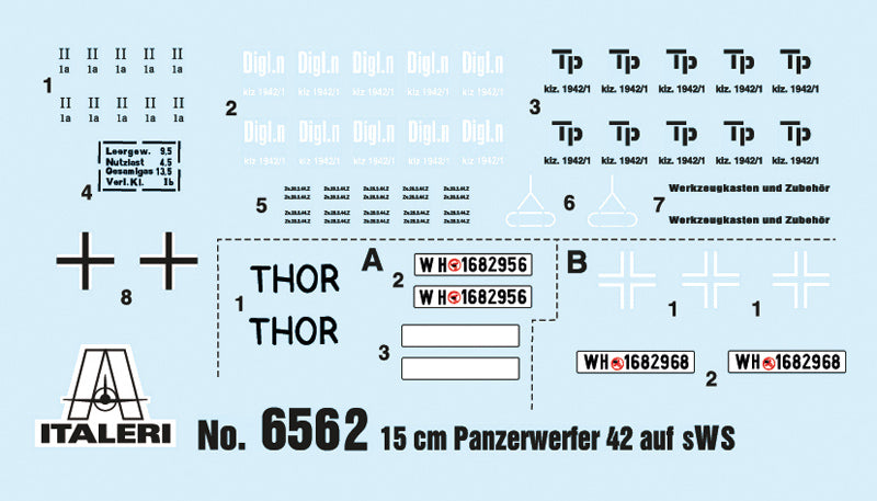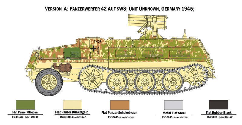 The Schwerer Wehrmachtschlepper (sWS) was developed as a medium half-track and used to transport supplies to front-line troops or as a towing vehicle for the light artillery. However, on the large rear flat load compartment some other applications have been developed. One modification was the Panzerwerfer 42 auf sWS, a 10 barreled 15 cm Nebelwerfer 42 rocket launched placed over an armored ammunition storage compartment. The rocket launcher, developed as device to create smoke screens, was soon used as real artillery able to launch high-explosive ammunitions. It could shoot the rocktes with impressive and deadly effects. The original structure of the transport vehicle was strengthened with additional shields to protect the crew from the enemy fire and from the negative effects of the rocket launcher.