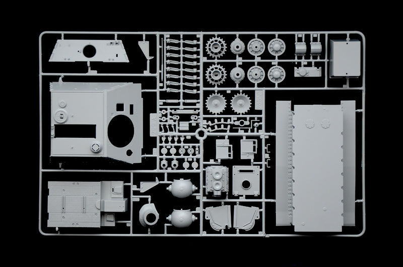 During World War II the German Army had to combat frequently fortified positions or urban defense centers. Due to tactical reason - the troops were at short distance to the enemy lines - artillery and air support could not be engaged. This led to the development of the “Sturm” - version of the “Tiger” heavy tank (Italeri N. 6471). Onto the heavy-duty chassis the efficient and unique 38 cm mortar was mounted, which had a short range but enormous fire power. Only few units of the Sturmtiger were built and were mainly used in 1944 on the Western Front.