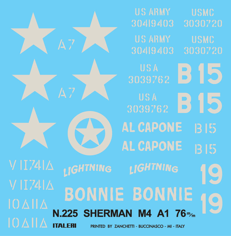 In 1941, after the German attack on Russia, it became clear to the UNITED STATES that possibility of an American involvement in the war was becoming more and more inevitable. For this reason, President Roosevelt ordered substantial production increases of the medium tank M4. The tank was not a completely new model, since it derived from the previous model M3 “Grant”. The Sherman had some major improvements on the superstructure and on the armament as well as on the welded or cast hull. The “General Sherman”, under which name the new tank was soon to be known, was equipped with a 75 mm gun, which was, however, insufficient against the German Tanks. This necessitated a series of changes, including a completely new turret as well as a 76 mm gun, which would be more efficient than the previous one. The new prototype was given the designation M4 A1. In January 1944, the new type was introduced. Until the end of the war, about 3400 pieces were produced. Notwithstanding the improvements, there were still many defects, one of them being the lack of protection. Frequently the crew was forced to protect the tank sides and the front with sandbags. In some instances the most exposed track sections were covered and sometimes even cement or steel blocks were attached. Tanks to its numerical superiority, the tank was able to match the German tanks, using its great maneouverability and its excellent 76 mm gun. M4 A1 took part in the invasion of Normandy and in all European theatres.