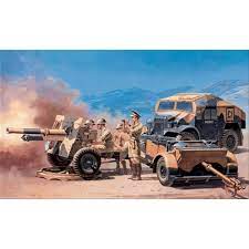 This British howitzer (25-pounder, 8 mm calibre) was the standard gun for the British Army throughout the Second World War. Offering good ballistic performance, it also had the advantage of high mobility (thanks to the Morris Quad towing tractor). Each gun was towed together with its own ammunition trailer to ensure good firing autonomy without having to rely on supplies from logistics services.
