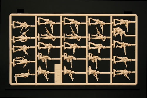 On the eve of the Tet Offensive (January 1968), U.S. Forces counted more than 330.000 soldiers and 78.000 Marines in Vietnam. The Marines units and the 1st Cavalry division were composed of prepared, reliable and determined soldiers. This kist shows the typical formation of an American infantry unit. Soldiers are equipped with an M16 assault rifle and with the 7,62mm M60 machinegun. During the Vietnam War, special forces units better known as Green Berets were employed, too.