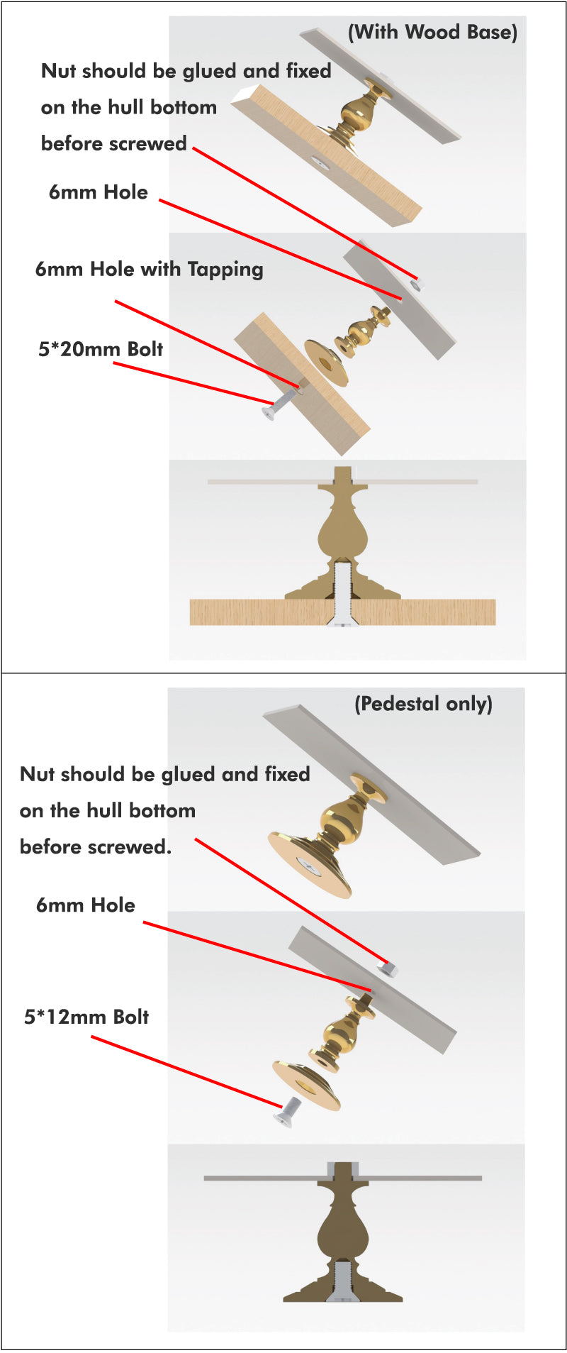 Pontos Model Buffed and Polished Solid Brass Pedestals Type 100