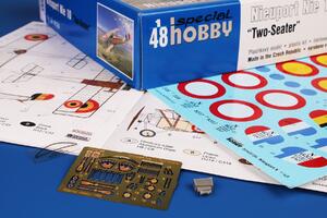 The model comes on two sprues with plastic parts and contains also a set of resin parts, a PE fret and a decal sheet. The marking options provided cater for three machines, a French, British and a Belgian one. The French Nieuport was operated in Macedonia by MF388 unit, wearing a big Cross of Lorraine, the British machine with no. 8517 had several air victories over German airplanes to its tally and the Belgian aircraft flew with No.4 squadron from Houtem aerodrome in 1915.