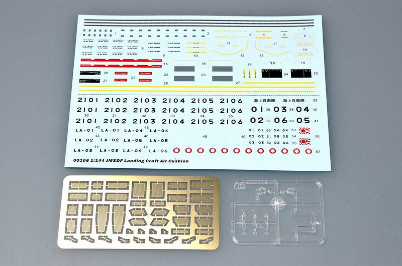 00106 LCAC JMSDF The JMSDF LCAC (Landing Craft, Air Cushioned) was introduced from the US as a landing craft of LST Osumi class ships. It cruises with its hull floated about four feet above the surface. Therefore it is capable of landing directly from the mother ship to the beach, and swift loading and unloading of vehicles. This makes it possible for troops to access 70% of the world's coastline, while only 17% for conventional landing crafts. It can carry heavy payloads of 60 tons, equal to one Type 90 tank, or four armored vehicles. The four 4000hp engines, two for floating and the others for propelling, are mounted separately in both modules of the hull. Although JMSDF LCACs were originally planned as LST-based crafts, in 2004 they were assigned in the 1st air cushioned craft squadron. They were numbered from LCAC-2191 to LCAC-2196, and started to be treated as defense ships._x000D_