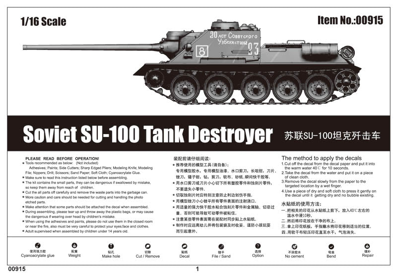 It was developed in 1944 as an improvement to the SU-85, built on the same chassis as the T-34-85 tank. It was designed and built at the UZTM in Yekaterinburg. The SU-100 quickly proved itself to be among the best self-propelled anti-tank guns of World War II, able to penetrate 125 mm of vertical armor from a range of 2,000 m and the sloped 85 mm front armor of the German Panther from 1,500 m . After intensive testing with different models of 100 mm gun Soviet engineers approved the D-10S gun for mass production. The hull of SU-100 had major improvements over the SU-85; the thickness of the front armour was increased from 45 to 75 mm , and the commander's workplace was made in a small sponson on the right side of the hull; combined with the commander's cupola this greatly improved the commander's effectiveness. For better ventilation two ventilator units were installed, instead of only one as in the SU-85. Mass production began in September 1944.