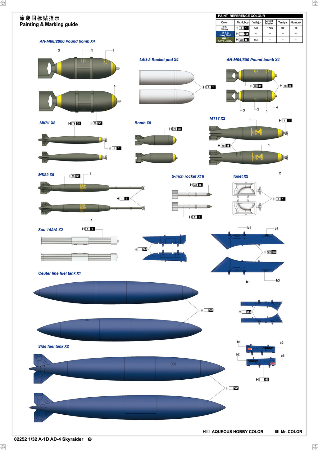 The Douglas A-1 Skyradier were designed as the new generation torpedo/bomber.Following the plan were changed for the end of the war,the Navy apply the Skyradier as a new attacker for the outstanding performance in the strike missions.The AD-4 is the largest production model of the family of the Skyradiers.A new 2700 horse power R-3350-26WA engine were installed,and the windshield was strengthen to protect the pilot from the bullets.A series of new equipments such as two extra guns,a P-1 autopilot,new arresting hook were also applied.
