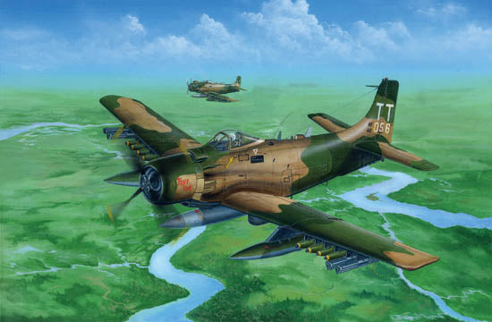 The Douglas A-1 Skyradier were designed as the new generation torpedo/bomber.Following the plan were changed for the end of the war,the Navy apply the Skyradier as a new attacker for the outstanding performance in the strike missions.The A-1J is the final production version of the Skyradier family,they were powered by a new R-3350-26WB engine and with structural improvements to increase wing fatigue life,some extra antennas were added on the fuselage.72 aircrafts were built.