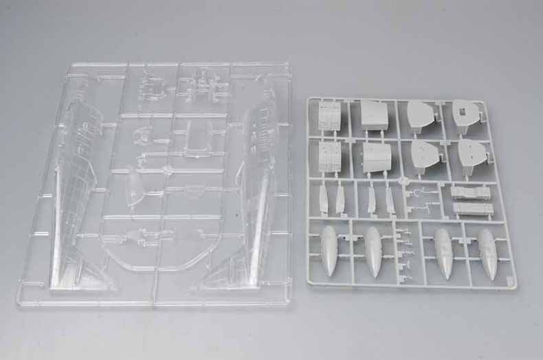 More Features " The kit consists of 321 parts in grey plastic with an additional 4 rubber tyres, 12 clear plastic parts for canopy 4 metal for