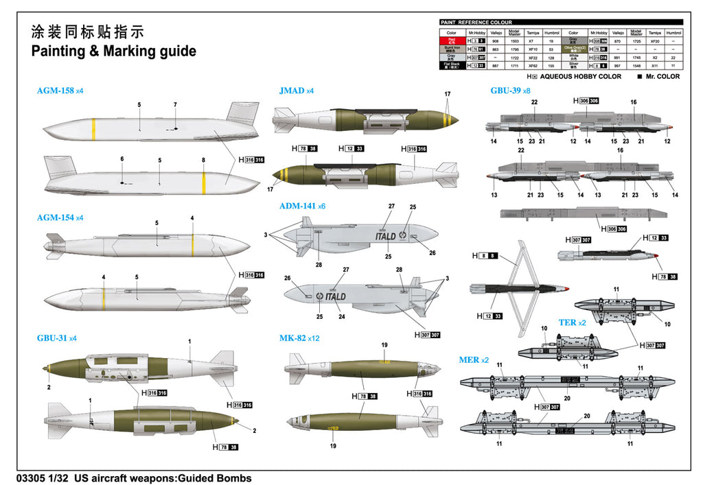 Include:GBU-31(×4);JDAM(×4);MK-82(×12);TER(×2);MER(×2);ADM-141(×6); _x000D_
