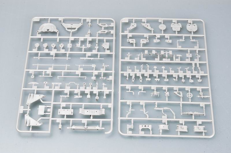 More Features The kit consists of 264 parts in light grey plastic with 2 thick TPR rims and 2 thin TPR rims, 2 brass tube, turned aluminum gun barrel,chain in 1
