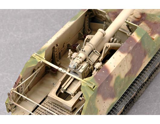 In 1942 Krupp started development on a heavy SP gun-carrier for the 17cm Kanone or 21cm Mörser by using Tiger automotive components like engine、transmission、steel road wheels and tracks. Complete weight with 8 men crew was about 60tons, armor thickness was 30mm at the front and 16mm on the sides, a top speed of 45km/h on roads was possible. The partly assembled prototype was found in 1945 by allied troops in Haustenbeck near PaderbornItem No 00378