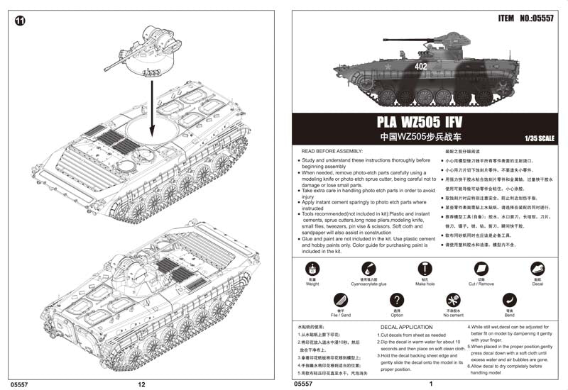 The WZ501 infantry fighting vehicle (IFV) is a Chinese copy of the Soviet/Russian BMP-1. China first obtained few examples of the BMP-1 via Egypt in the late 1970s. Reverse-engineering of the vehicle succeeded in 1986 and small batch production began in 1987. The WZ501 was originally developed for the export market, but was later adopted by the PLA, which desperately needed a dedicated IFV for its armoured troops. The WZ501 entered the PLA service in 1992 as the ZBD 86._x000D_