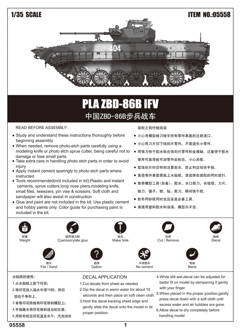 TheWZ501InfantryFightingVehicle (IFV) is a Chinesecopyof the Soviet/Russian BMP-1. China first obtainedafew examples of the BMP-1 via Egypt in the late 1970s. Reverse-engineering of the vehicle succeeded in 1986 and small batch production began in 1987.TheWZ501 was originally developed for the export market, but was later adopted by the PLAwhich desperately needed a dedicated IFV for its armoured troops. The WZ501 entered thePLAservice in 1992 as the ZBD 86.