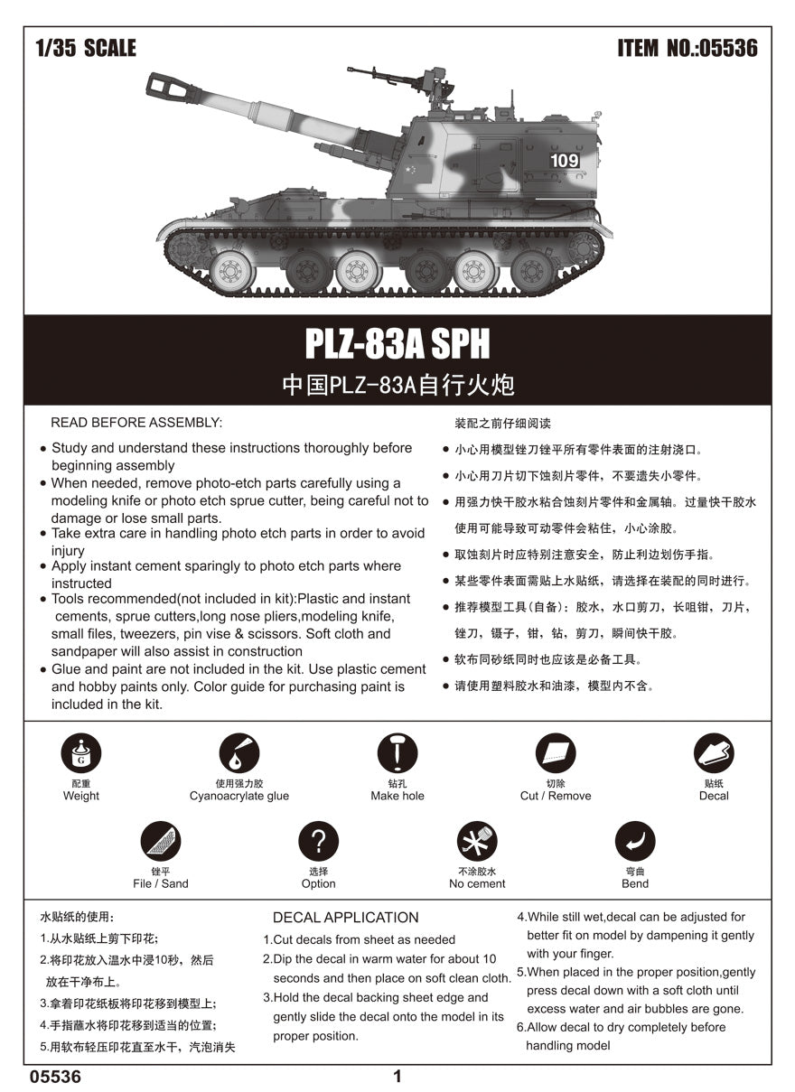《PLZ-83A SPH》This is the People’s Liberation Army’s standard heavy howitzer. It entered service in the early-1980s and was present in large numbers for service inKoreaand against the Russians. The main armament cannon is based on the Chinese 152-mm Towed Type 66 mounted on an entirely new chassis similar to the Russian 152-mm SP Gun-Howitzer 2S3. The layout of the Type 83 follows the general pattern of the American M109, with six roadwheel pairs, the engine and drive sprocket at the front, and the large square turret at the rear. The gun is capable of firing standard 152mm howitzer rounds as well as a new RAP round known as the MP-152. The fire control system is operated from a panel. Direct fire sights are provided as well as infrared night sights. There are extensive storage points around the hull and turret. The crew communicates with each other using the Type 803 intercom system.