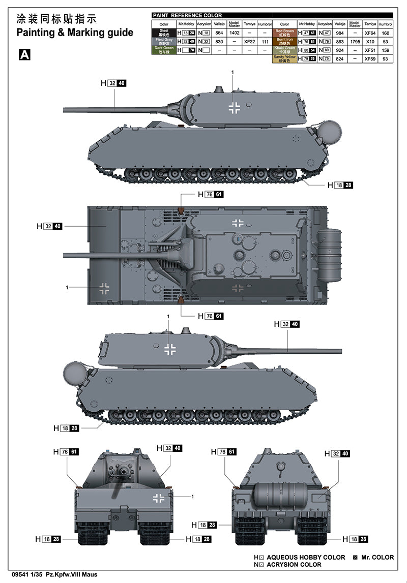 Panzer kampfwagenVIII Maus, the super-heavy tank designed during World War II Germany. It is equipped with a 128mmKwK44 L55 gun and gun and a coaxial 75MM KWK L36.5 auxiliary guns, and all vehicles are equipped with a 240-60 mm armor. Mouse ultra-heavy tanks drive system experimental electric drive system, but compared to the weight of 188 tons, its speed can reach 18 kilometers per hour. _x000D_