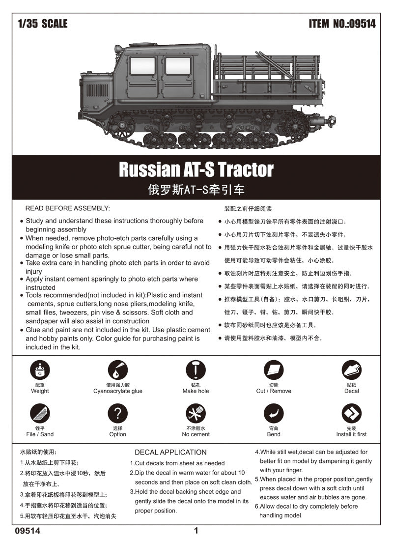The medium artillery caterpillar AT-S was developed over forty years, and entered service in the Soviet Army in the early fifties, but was replaced by the medium artillery crawler tractor ATS-59 . Besides its use in the Soviet Army, the AT-S was used by all the countries of the former. Warsaw Pact, with the exception of Czechoslovakia, and was exported to countries like China, Egypt, Finland, Syria and Yugoslavia. AT-S can carry a maximum payload of 3000 kg towing trailers or weapons whose weight is 16 000 kg. Conventional weapons include KS-19 anti-aircraft guns to 100 mm howitzers and 152 mm.