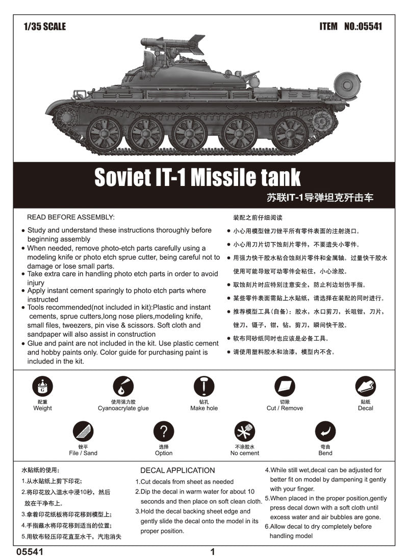 The IT-1 was a Soviet cold war missile tank based around the hull of the T-62. The tank fired specially designed 3M7 Drakon missiles from a pop-up launcher. It saw very limited service between 1968 and 1970. The large deadzone around the tank created by the missiles' minimum range combined with the limited amount of ammunition carried made it unpopular with the military. Additionally the 520 kilograms of guidance equipment needed for the missile was impractical. Eventually they were converted into recovery vehicles.