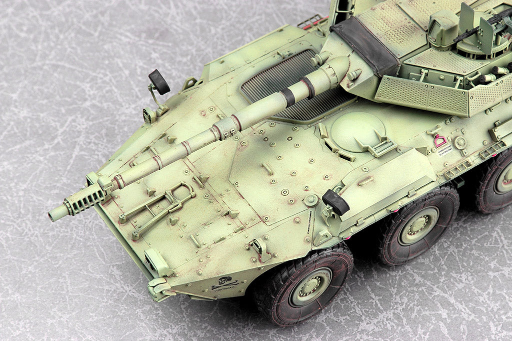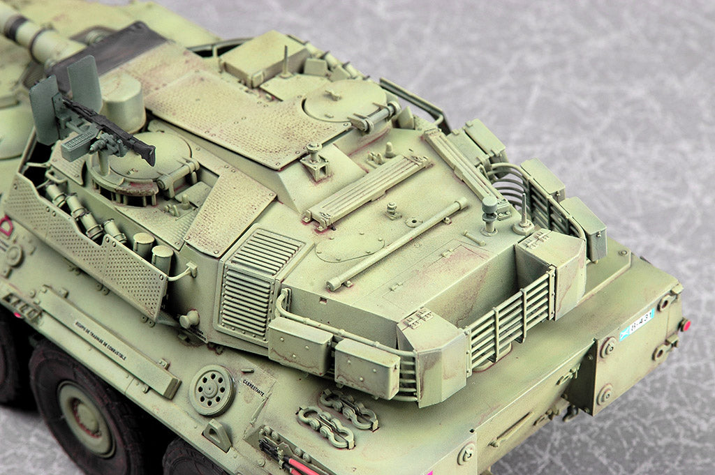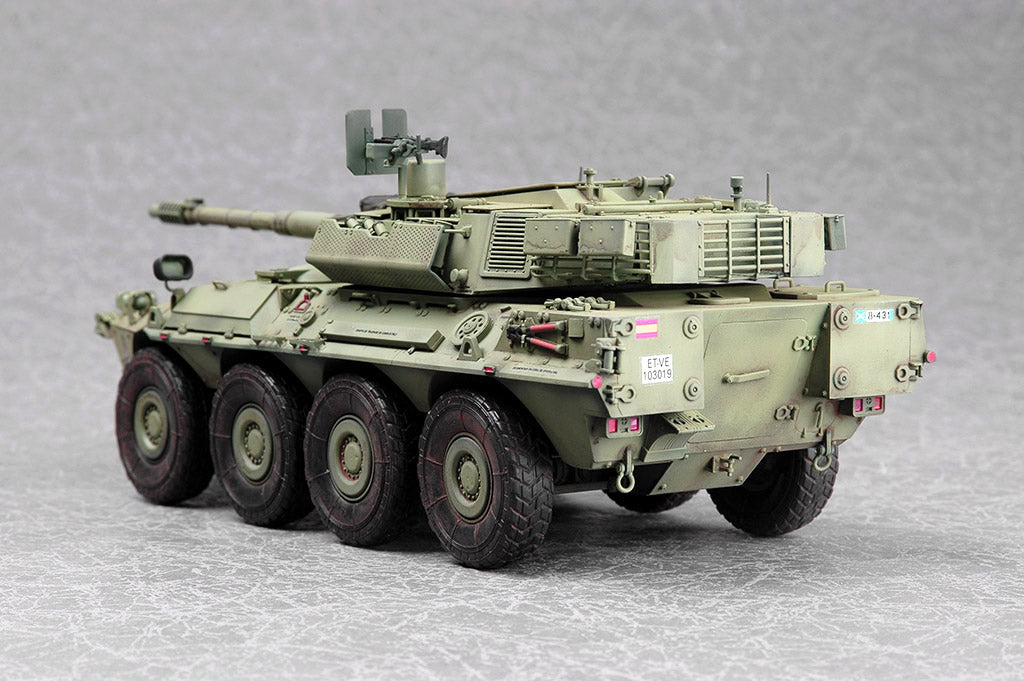 VRC-105,the most important success of the Centauro, came when the Spanish Army confirmed an order for 22 examples to be assigned to Lusitania 8 Cavalry Regiment. A follow-on order for 62 additional vehicles was issued by the same Army in February 2002 as a confirmation of their enthusiasm for the “Centauro”. The Spanish “Centauro”, named VRC-105 Centauro, bear last batch modifications together with some few ’on demand’ changes: stretched hull, bolted add-on armor on the hull-front, some basket-hung containers on the turret rear, some slightly modified external fittings, repositioned smoke launchers, locally made radio sets and aerials.