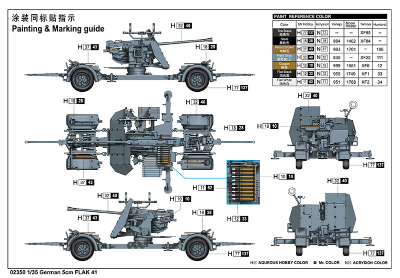 The 5 cm FlaK 41 was 50 mm anti-aircraft gun produced for defending intemediate zone above the light, 37 mm guns' range, but below the ceiling of the heavy, 75 mm and above, pieces. Development of the gun, although started in 1936 was slow, and the contract was awarded to Rheinmetall-Borsig only in 1940. The gun was produced in two models, used for defending important industrial installations. None of the two was a success and both shared the same faults. The speed of traverse was too slow for fast-moving targets and the gun proved underpowered, even though the propellant gave a powerful blast, able to dazzle the aimer even in broad daylight. Altogether 60 of 5 cm Flak 41 were produced, starting from 1941. Some of them were still in use in 1945. _x000D_