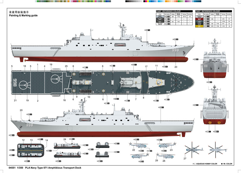 The Type 071 are amphibious warfare ships of the People's Republic of China's People's Liberation Army Navy. The ship carries hovercraft and helicopters to allow amphibious assault from greater distance and against more difficult shore terrain. Built by the Shanghai-based Hudong Shipyard, the ship is equipped with a 76 mm gun and 4 × 30 mm CIWS for self-defense. The ship significantly improves the PLA Navy’s sea-lift and power projection capabilities._x000D_
