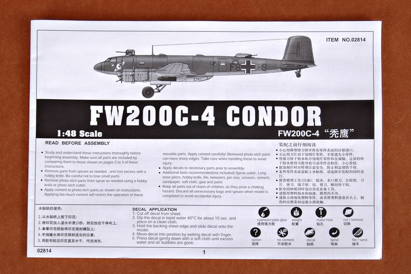 The Fw200 was designed in 1936 as an airliner for Lufthansa. It was of a low-winged, mainly all-metal construction ,First flight was July 1937. Although originally a commercial aircraft, converted to military use, it was as a maritime patrol bomber that the Fw200C-3/4 Condor made its mark during the Second World War. In this capacity, acting in co-operation with U-boat packs, it formed one of the most effective Luftwaffe combinations of the war, and many a convoy was to rue the moment it first spied a Condor above the horizon. Meantime, the airline Fw 200Bs and the few pre production C-0s were pressed into service as transports. Production continued until early I944 through sub types C-1, -2, -3, -4 and -6, a total of 263 Condors of all versions being built. Towards the end of the war, when the Fw 200 marauding tactics had been largely mitigated, several Condors were diverted to transport duties for the use of Hitler and his staff. A projected development, the Fw 300, with enlarged wing span and inline engines of greater power, did not progress beyond the design stage. Type: Fw 200C-4 Function: Maritime Reconnaissance Engines: Four 1000hp BMW 323R-2 radials Armament: MG 15 7.9mm machine guns ×5 MG FF 20mm cannon ×1 Span: 32.84m Length: 23.85m Height: 6.30m Empty weight: 17005kg Max. weight:24520kg Max. speed: 224mph Service ceiling: 28700ft Range: 3950 miles