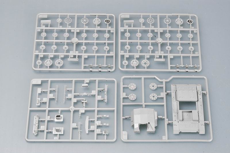 Total Sprues 5pcs sprues, lower hull, two rubber strip track_x000D_