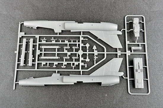 The Delta Dart was developed from the Convair F-102 Delta Dagger. The more powerful Pratt & Whitney J-75-P-17 engine offers the aircraft a higher speed to Mach 2. 4 AIM-4 Falcon Missiles and an Air-2 Rocket can be carried in the weapons bay under the fuselage. The F-106 first flew on 26th December 1956, and entered service in June 1959. 277 single seater A types were built.