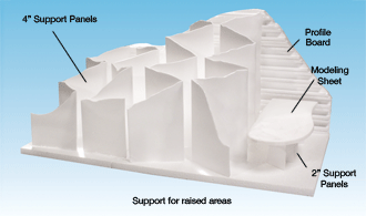 A complete system of products that work together to build lightweight understructure that models mountains, valleys, waterways, caves and any other land surface feature. You can shape even the most detailed terrain features.