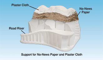 Cut easily with Hot Wire Foam Cutter, Foam Knife, scissors or hobby knife. Cover with No-News Paper™ and Plaster Cloth. Just the right width to use with Road Riser™ to make an elevated road base.