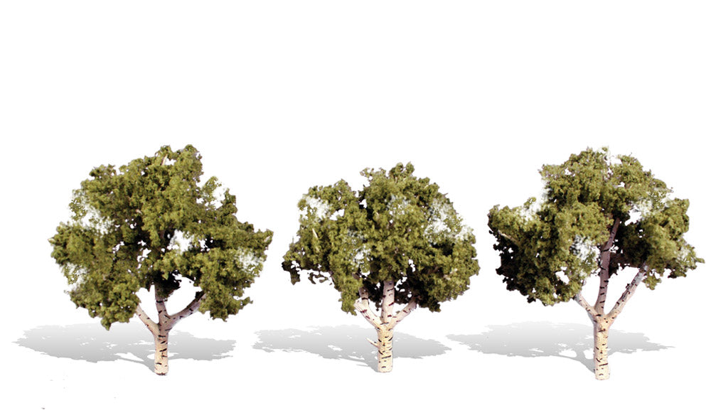 Finely detailed, painted and flexible trunks and foliage in a variety of natural contrasts and highlights. Use combinations of types and sizes throughout your layout for superior realism. Trees have planting pin and optional detachable base for temporary placement. Trees range in height from approximately 3/4 in to 9 in in height.