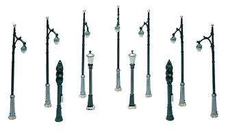 Sand, paint and weather these lights of different styles to help set your scenes on various areas of your layout.